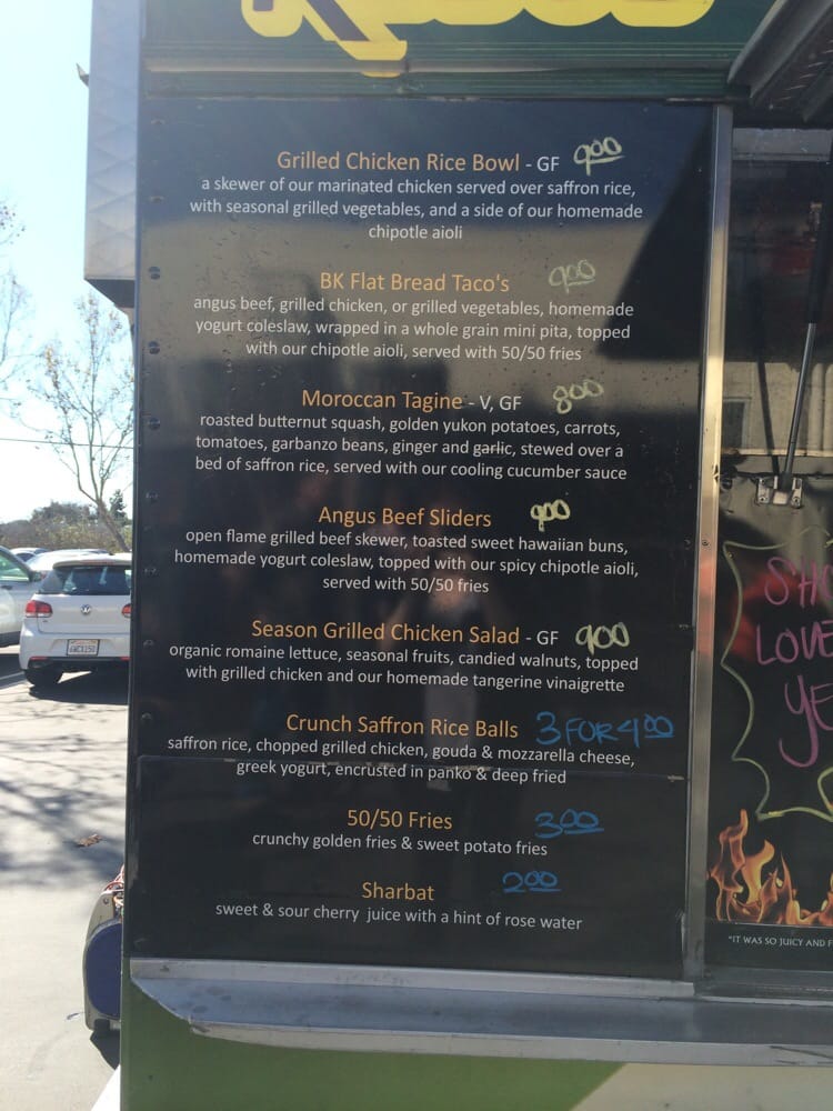 The Baba Kabob Truck Menu